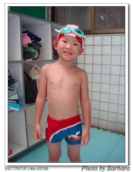 從七月底開始學游泳,除了八月因為感冒停了兩個星期外,小恐龍一個星期三次的游泳課鮮少缺席。從一開始哭著做熱身操、哭著下水到下課,甚至裝病逃學,到現在高高興興地去上課,光是不怕水這一項,就讓做媽的夠安慰了。
